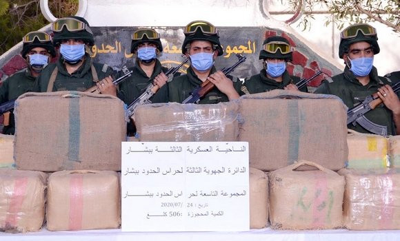 « Dans le cadre de la lutte contre la contrebande et la criminalité organisée et dans la dynamique des efforts intenses visant à endiguer la propagation du fléau de narcotrafic dans notre pays, des Garde-frontières ont saisi, le 24 juillet 2020 à Moughel près des frontières à Bechar en 3e Région Militaire, une grande quantité de kif traité s’élevant à cinq (05) quintaux et six (06) kilogrammes », précise le MDN.