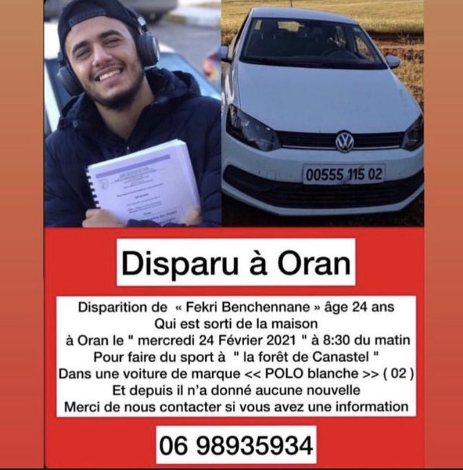 Porté disparu depuis mercredi dernier, le jeune Fekri Benchenane a été retrouvé mort à la plage de Cap Rousseau (Est d’Oran), ce lundi 1er mars, selon plusieurs médias.