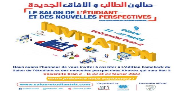 Le Salon de l’Etudiant et des Nouvelles Perspectives « Khotwa » est de retour cette année à Oran les 22 et 23 Mars à la bibliothèque centrale de l’Université Mohamed Benahmed Oran 2, Le salon arrivera le 10 Mai à Constantine au Palais de la Culture Malek Haddad avant de clôturer le Tour à Alger les 14 et 15 Mai prochain.
