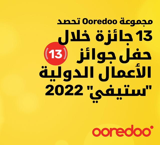 Le Groupe Ooredoo a annoncé avoir remporté 13 prix aux International Business Awards « Stevie Awards » 2022, où le groupe et ses filiales ont remporté 3 prix en Or, 3 en argent, 6 en bronze et un prix dans la catégorie « Choix du public ».