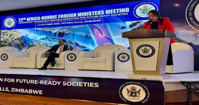 Dans le cadre de sa participation à la 22e réunion ministérielle entre l’Afrique et les pays nordiques, qui se tient à Victoria Falls, au Zimbabwe, la secrétaire d’État auprès du ministre des Affaires étrangères, chargée des Affaires africaines, Selma Bakhta Mansouri a, co-présidé, conjointement avec le ministre des Affaires étrangères du Royaume de Norvège, Espen Barth Eide, la session spéciale sur la sujet du renforcement du système multilatéral dans le traitement des questions de paix et de sécurité mondiales.