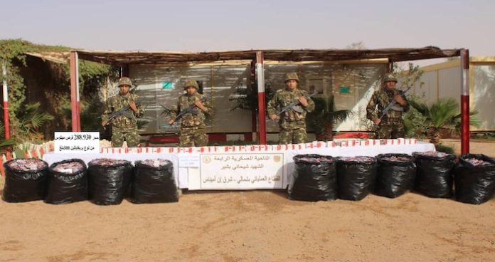 Dans le cadre de la lutte contre la criminalité organisée et en continuité des efforts déployés afin de contrecarrer le fléau du narcotrafic dans notre pays, des détachements combinés de l’Armée Nationale Populaire ont intercepté, en coordination avec les différents services de sécurité, lors d’opérations exécutées à travers les Régions Militaires, (43) narcotrafiquants et mis en échec des tentatives d’introduction de (4) quintaux et (58) kilogrammes de kif traité provenant des frontières avec le Maroc, alors que (23,32) kilogrammes de cocaïne et (1395 543) comprimés psychotropes ont été saisis.